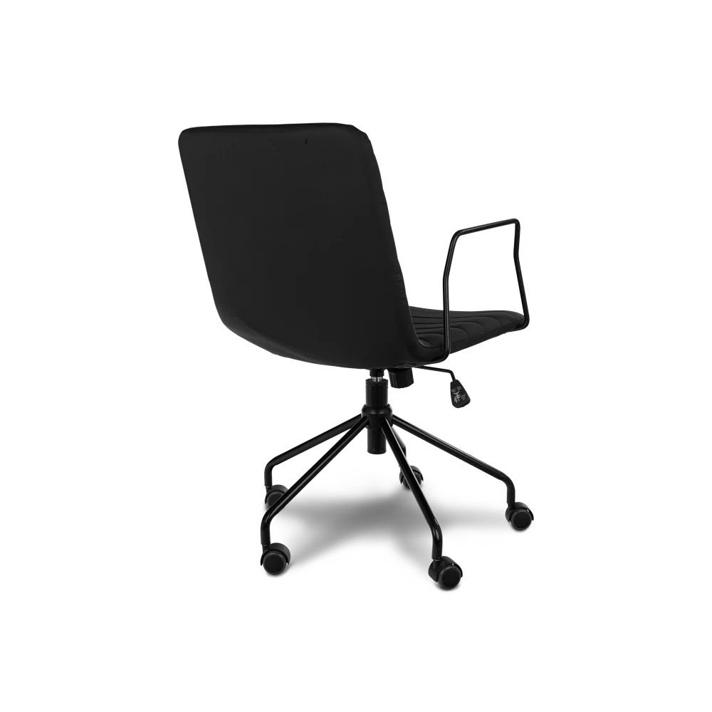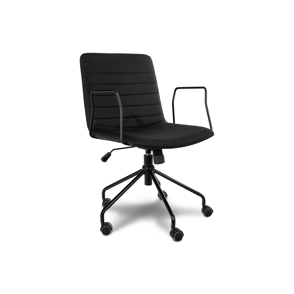 כסא אורח מרופד בד דמוי עור שחור / קאמל